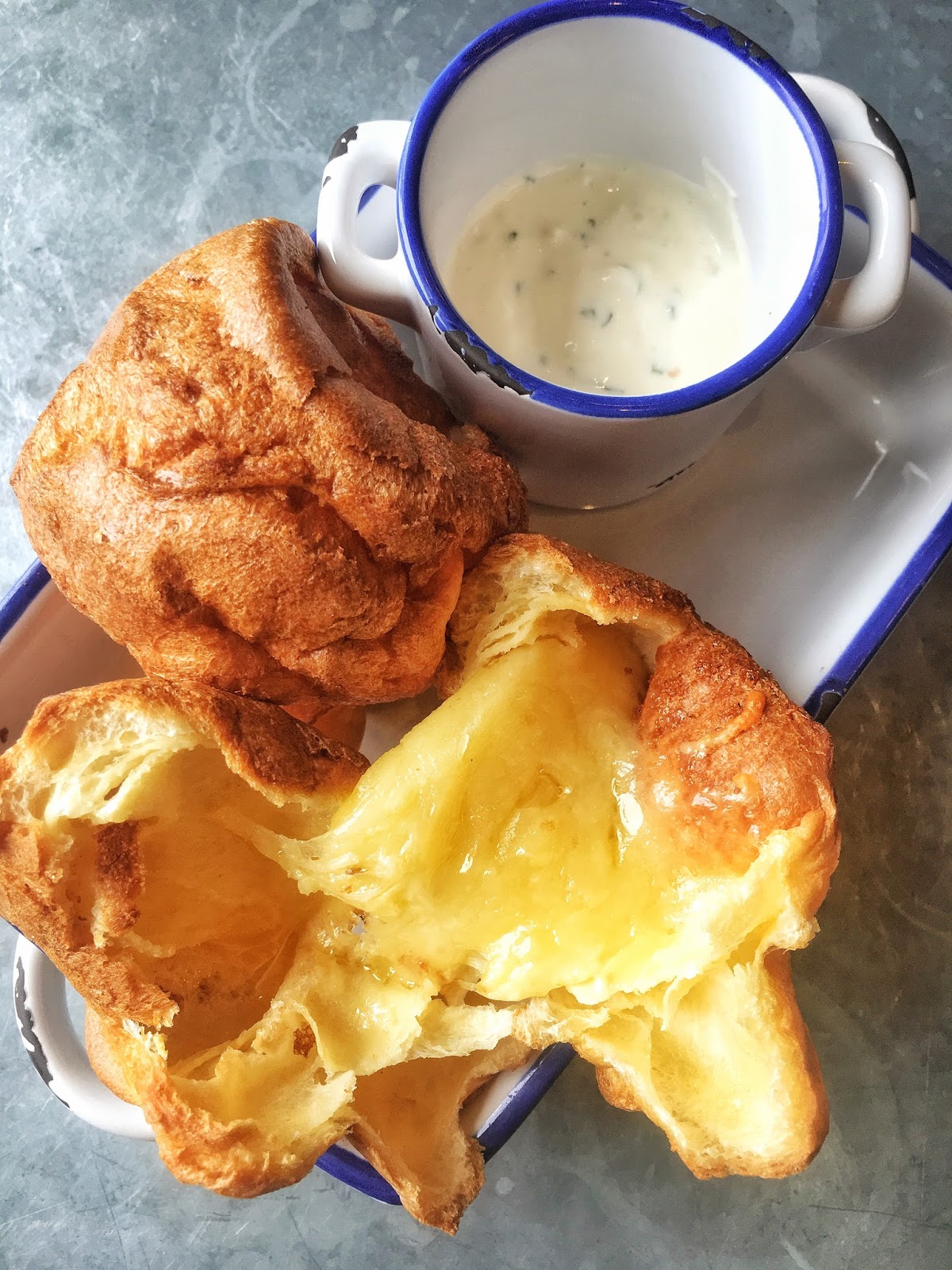 What We Ate: We started with a complimentary hors d’oeuvre from the kitchen, miniature Yorkshire puddings, filled with melted cheddar, and accompanied by a horseradish and creme fraiche dipping sauce. This innovative take on a Sunday Roast classic was such an improvement on the original! The cheese adds texture and flavour, and the fresh dipping sauce went perfectly with the light pudding batter. They were so good, we asked for more!