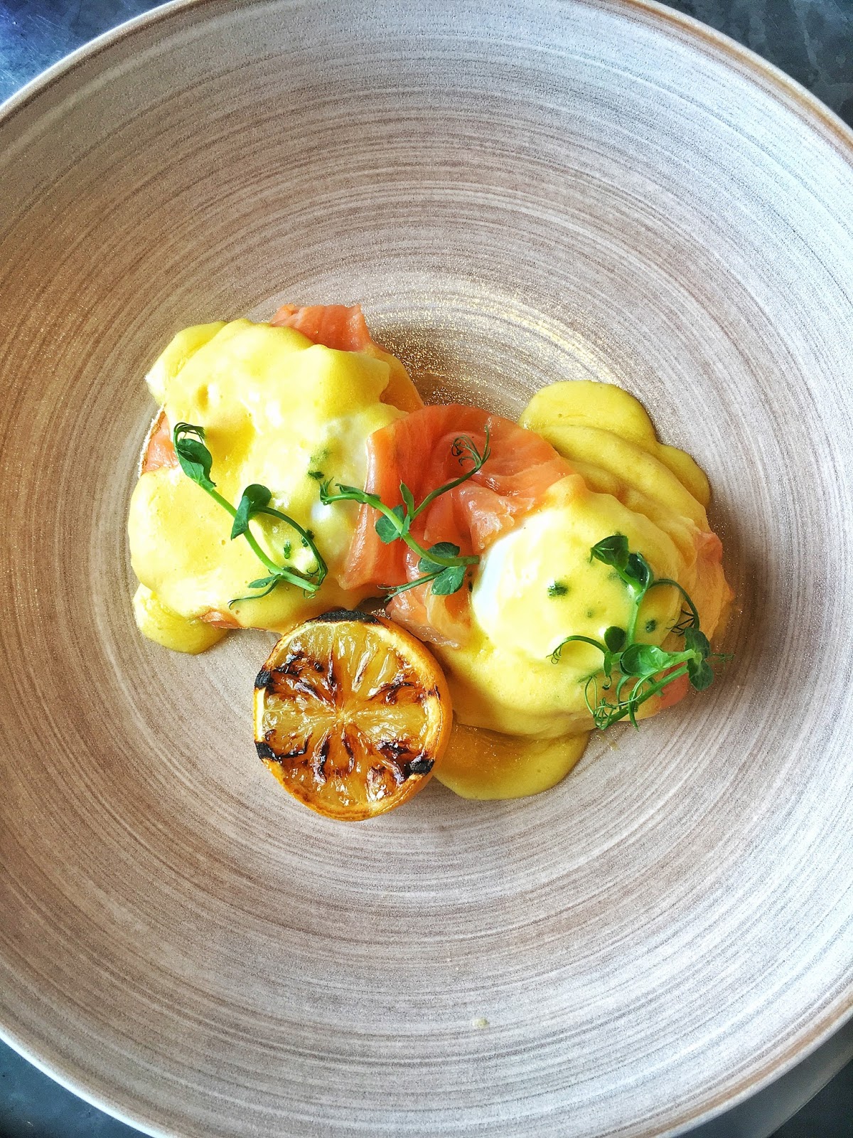 Next was the Eggs Royale – an English muffin topped with smoked salmon, poached eggs and a rich Hollandaise sauce. It’s a brunch classic, and the Gillray’s version was so generous that they even folded an extra slice of smoked salmon between the halves of the muffin. The grilled lemon halves were yet more proof of Gillray’s attention to detail, this dish made for a decadent start to the meal.