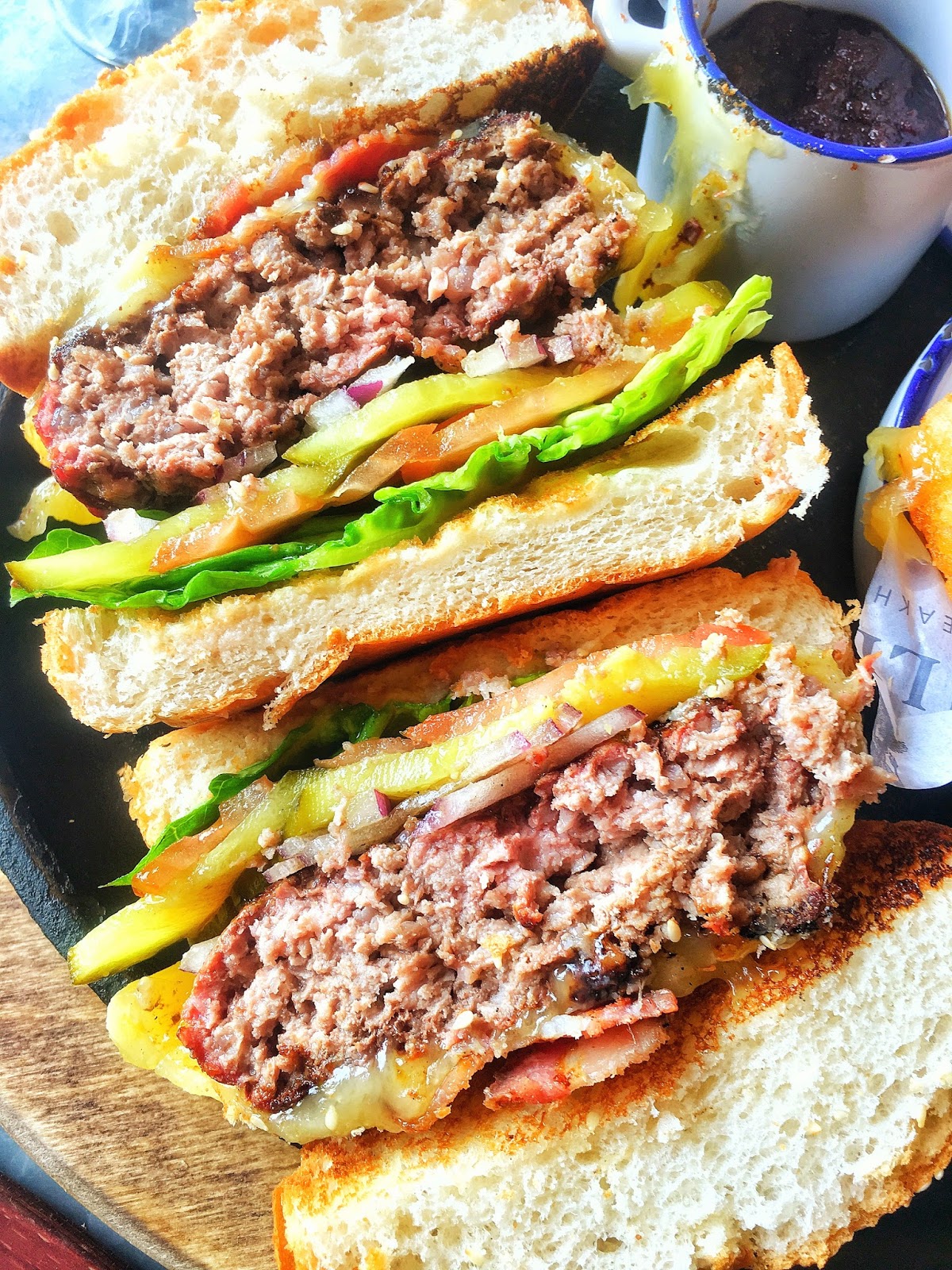 The second main course was the Gillray’s Steak Burger. This enormous stack, containing a 280g patty, cheedar cheese, onion rings and gherkin may have taken their generosity to a fault! It was hard to tuck in to, and even harder to finish! Sadly, the thick patty could only be ordered well done, it was flavoursome if a tad dry. The onion rings were crispy on the outside, and the hash brown nuggets were a brilliant and addictive invention, served alongside a delicious red onion and bacon chutney.